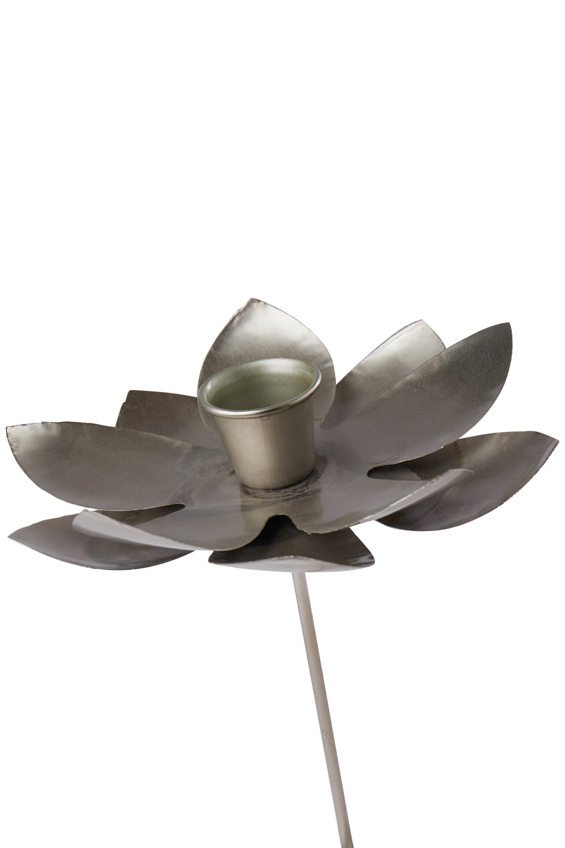 Blomster lysholder, antikk sølv, 16x9 cm