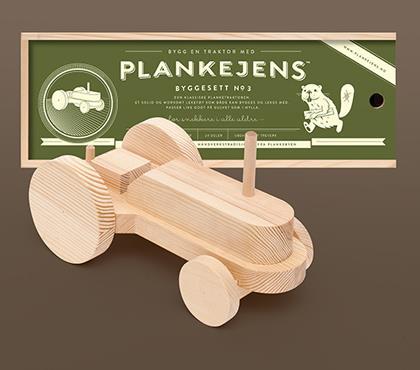 Den ferdige planketraktoren har et moderne design, men er like solid og nostalgisk fin som lekene i gamledager. Byggesettet leveres i en lekker og retroinspirert trekasse som er en leke i seg selv.