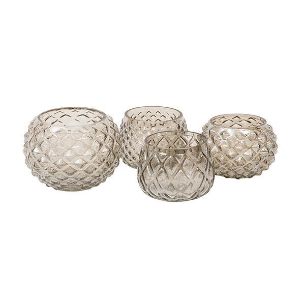 Våre vakre lanterner i set a 4, nydelig røykefarget glass og 4 ulike fasetter/mønster.