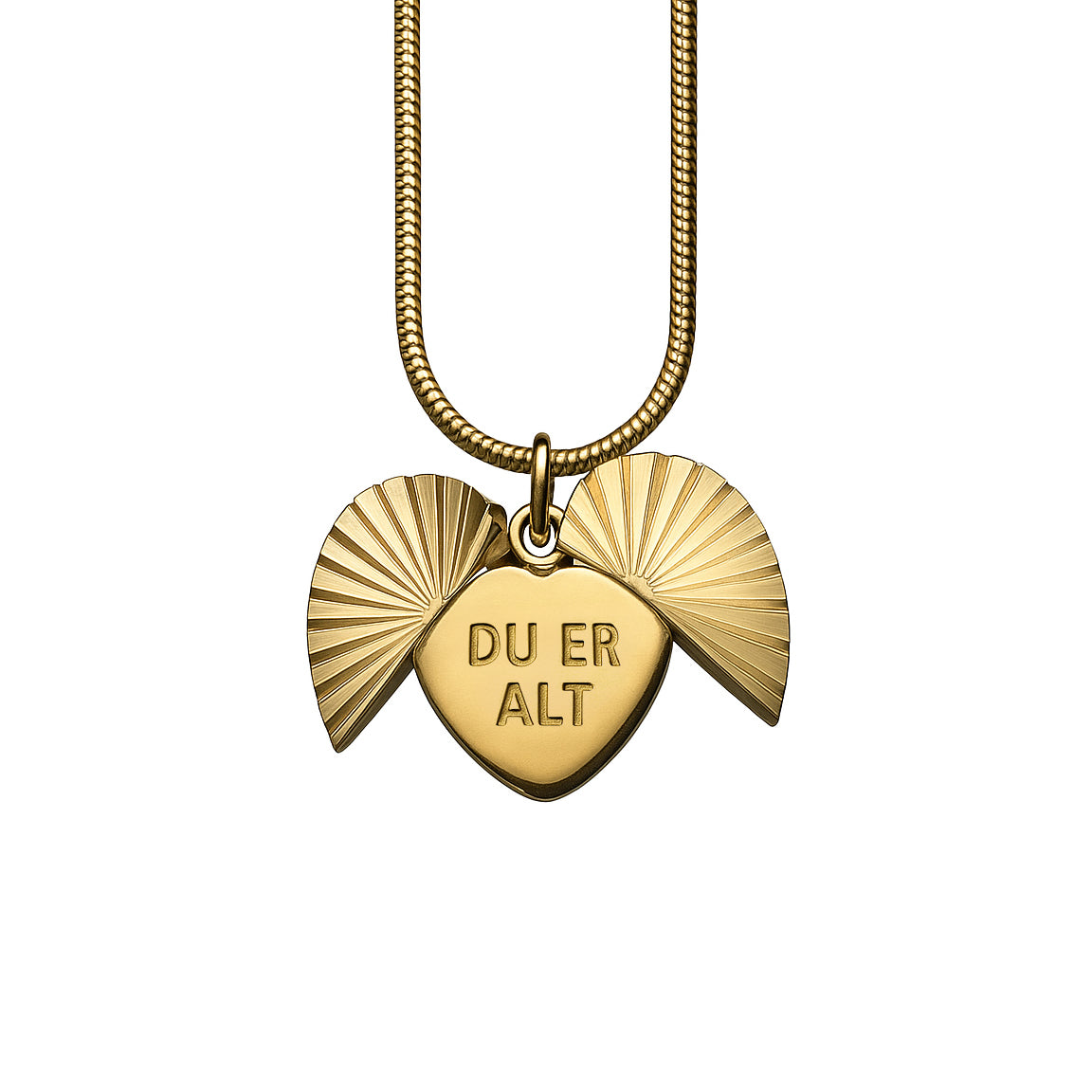Dette betydningsfulle halskjedet har teksten “STERK SOM FAEN” som et kraftfullt mantra, en påminnelse om egenverdi og styrke. Hjerteåpner smykket er et smykke som rommer mer enn et lekkert hjerte – det rommer en tekst fylt med kjærlighet. På dette smykket står det STERK SOM FAEN på hjertet som kommer frem når man åpner det. Da vil også det åpnede hjerte ligne et sett med englevinger.