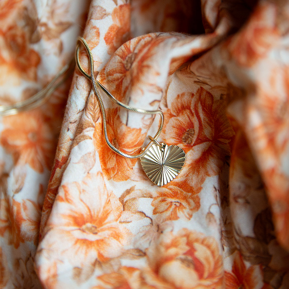 Smykket er laget av rustfritt stål, forgylt med 14 karat gull. Overflaten på det ytterste hjertet har et eksklusivt rillemønster. Halskjedet er selvfølgelig bly- og nikkelfritt.