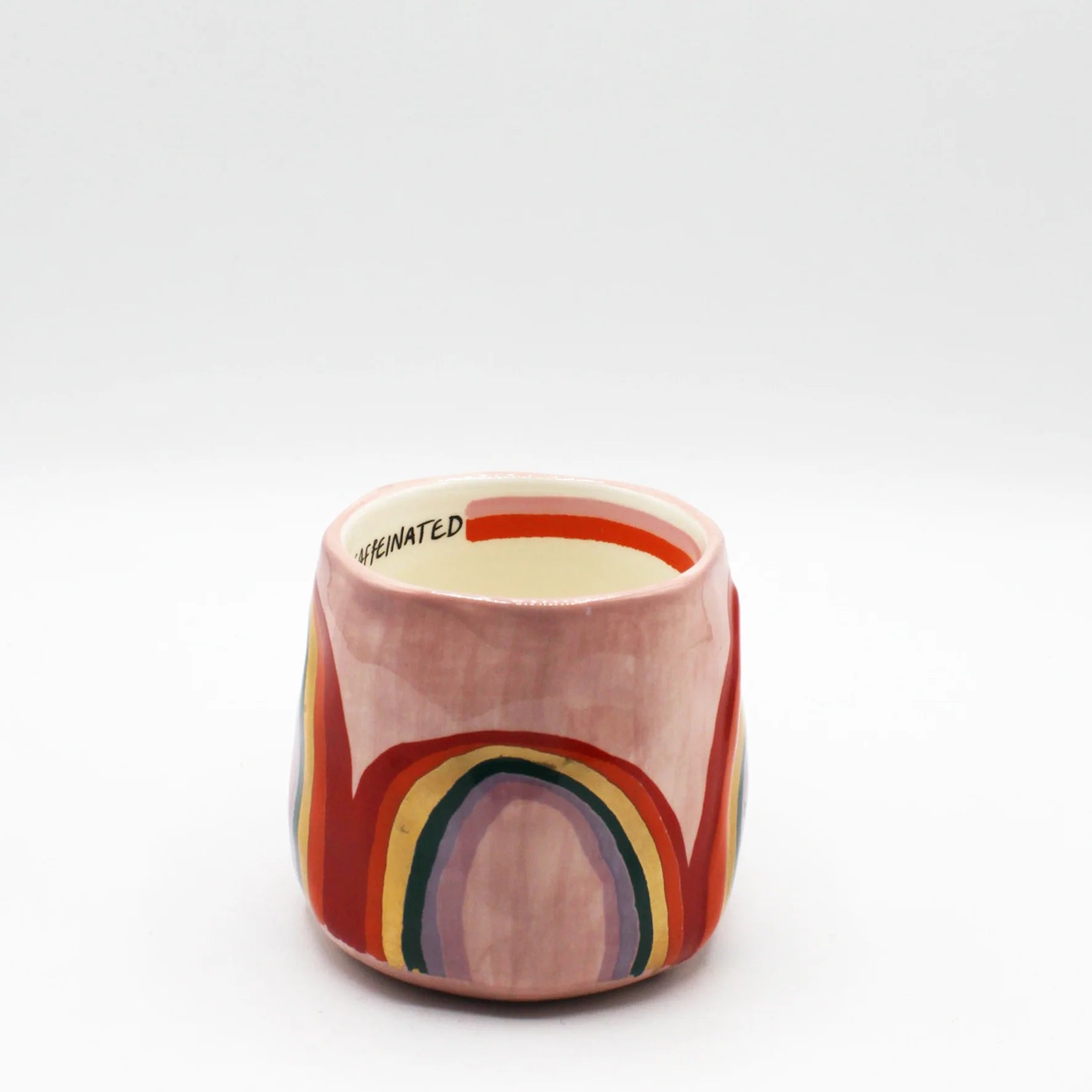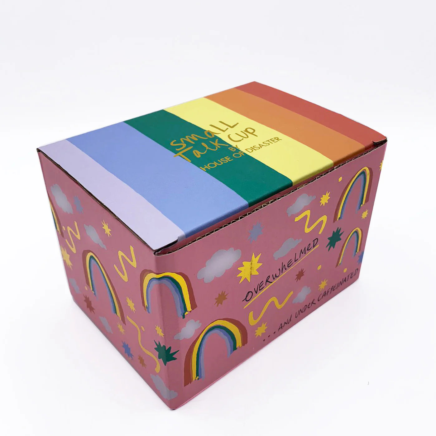 Krus med regnbue – «Overwhelmed and under caffeinated» 🌈☕