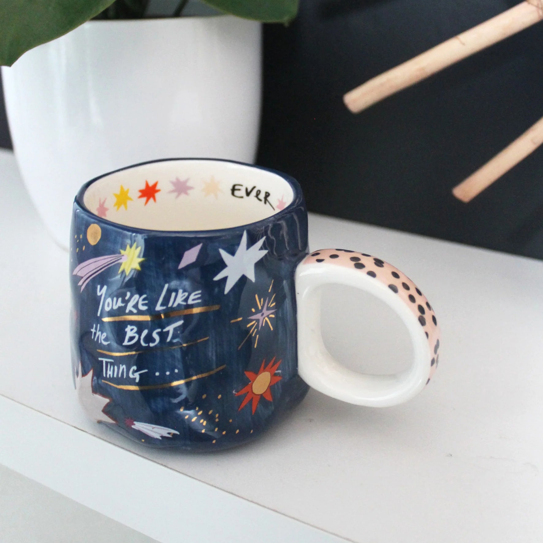 Dekket med et nydelig himmelsk mønster , skjuler koppen også en søt hemmelighet: teksten «You’re like the best thing… ever» som begynner utenpå og fortsetter på innsiden. Perfekt gave til en venn med sans for humor – eller til deg selv, for å starte dagen med litt ekstra glede.