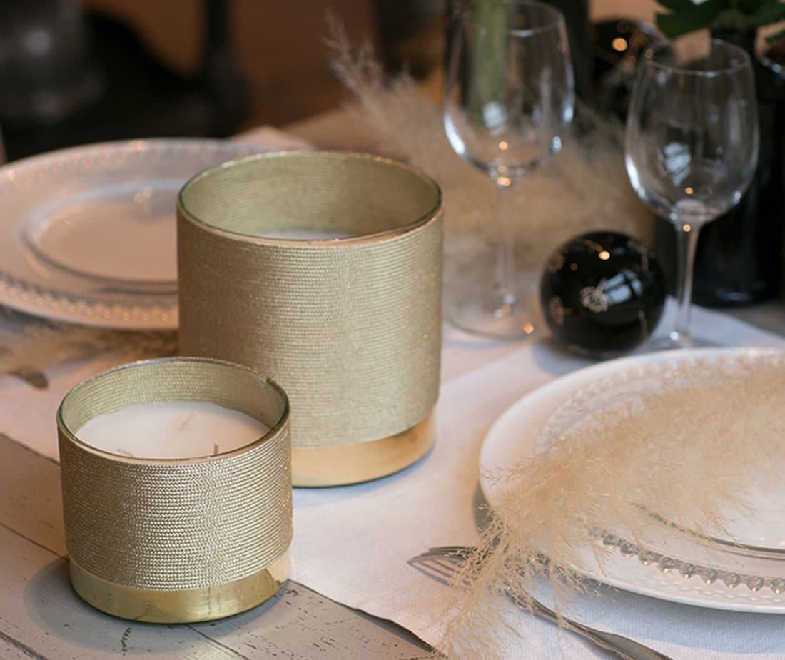 Stearinlys med spunnet metaltråd rundt.