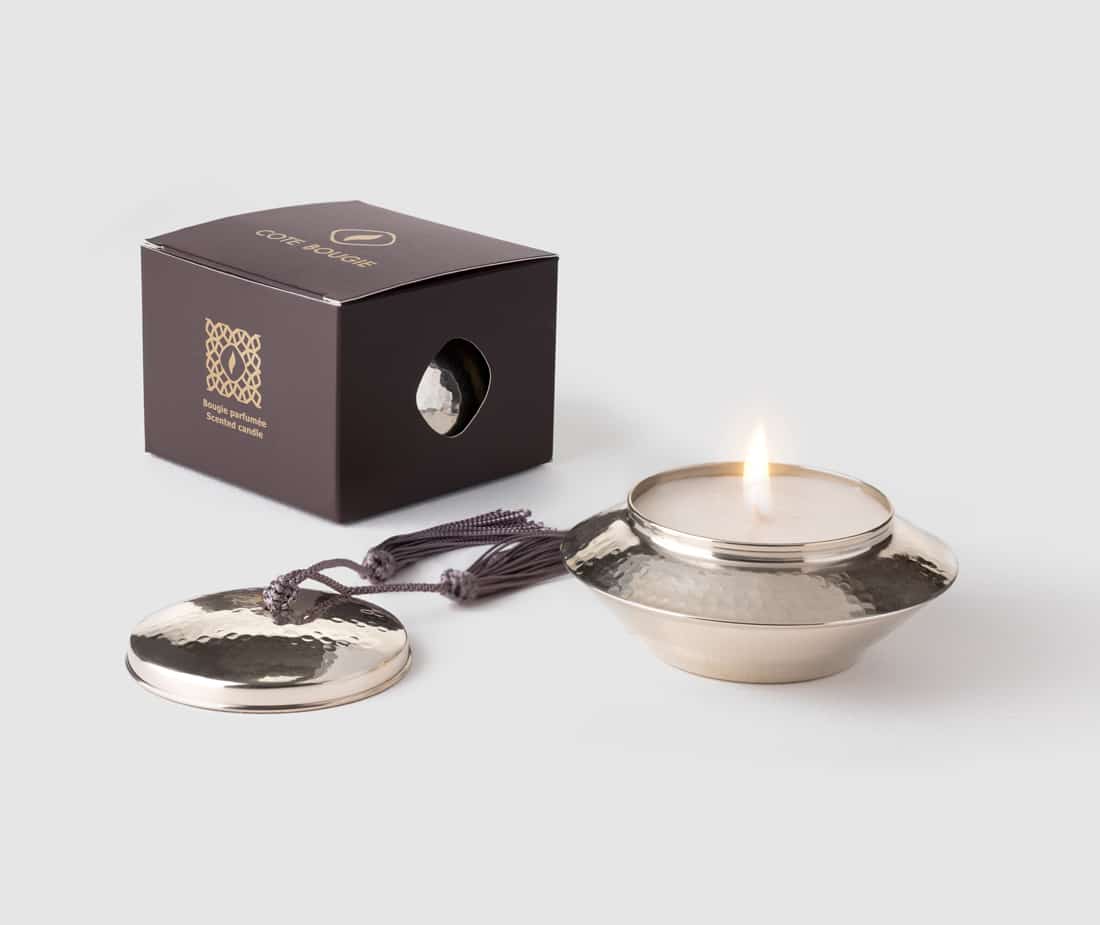 Lys i mettalbeholder. Beholderen er fin gjenbruke til oppbevaring.