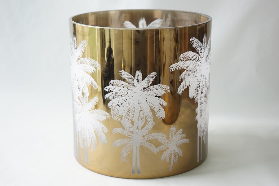 Lyslykt i glass. Gull og hvit. Størrelse XL