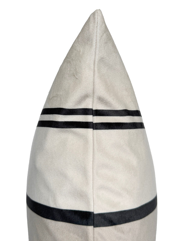 Fløyelspute i offwhite med sorte og grå striper – 40x60 cm ✨
