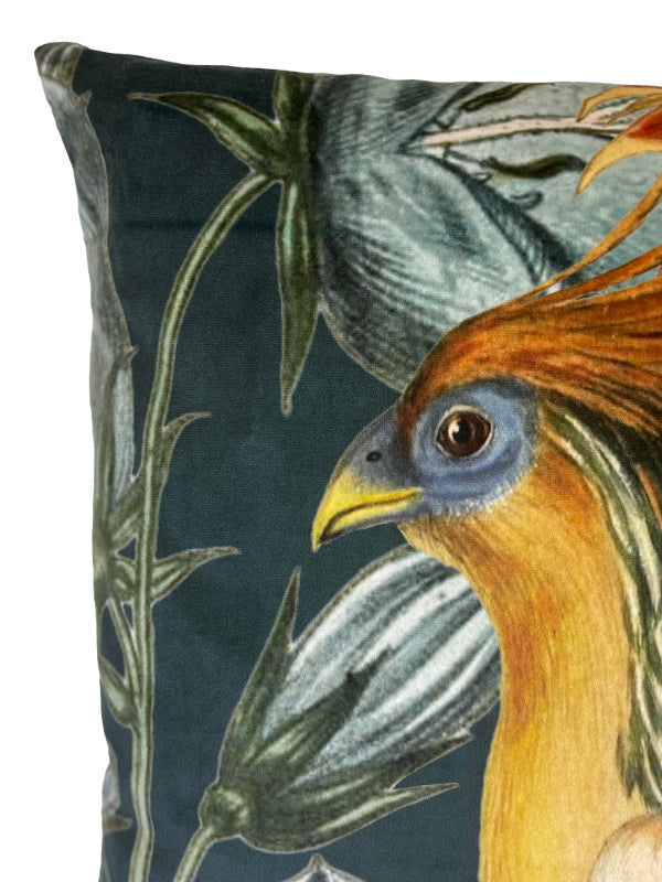 Fløyelspute med fuglemotiv og blomster – 50x50 cm 🕊️✨