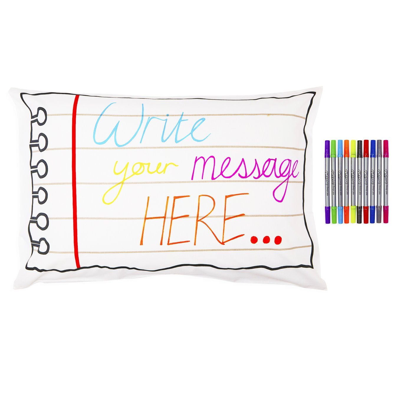 This fun colour-in pillowcase is the ideal gift for creative kids who love to draw and doodle. Comes with a set of ten wash-out fabric pens for all their designs and customisations. Then, whenever it's time for a bedroom makeover, or when they just want a new look, wash the pillowcase in the machine, and it's ready to go again! Makes one of the best fun and creative gifts for girls and boys and it's practical and useful, too!
