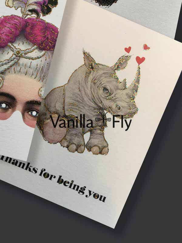 Kortene er i høy kvalitet med glitter og selvklebende solid konvolutt.