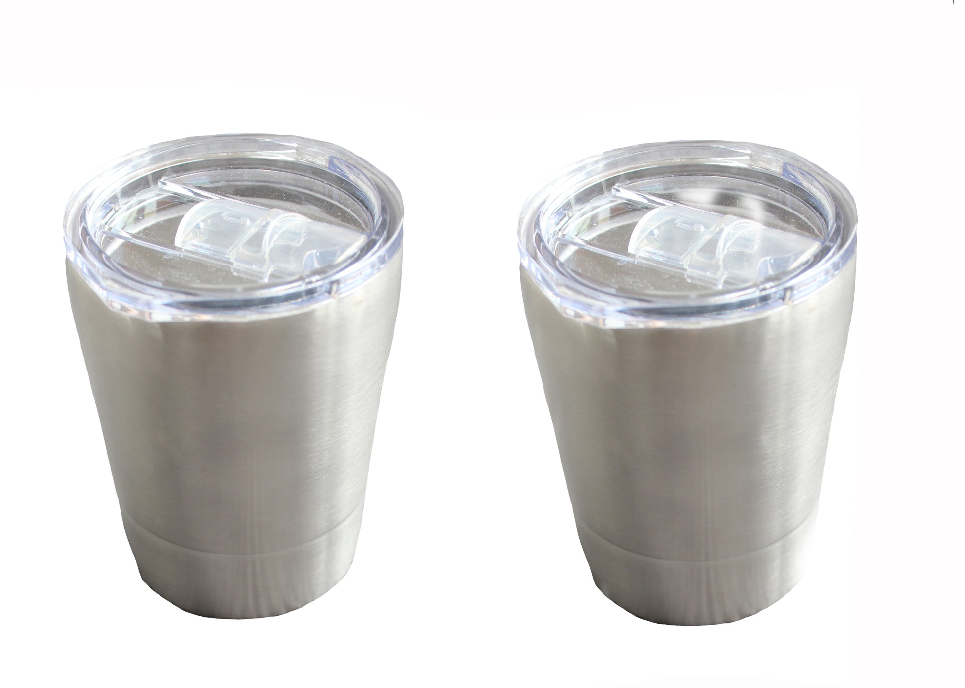 Moderne og miljøvenlig sæt af to kopper med aftagelig gennemsigtig BPA-frit plastik låg. Låg kommer med drikkefunktion - som kan åbnes og lukkes. Perfekt til brug der hjemme, på tur, i skole, tur på legepladsen mm.